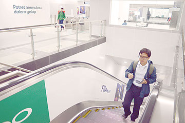 Warga saat akan keluar dari stasiun Bundaran HI, Jakarta, Senin (25/3).