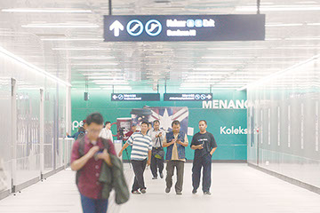 Warga saat akan keluar dari stasiun Bundaran HI, Jakarta, Senin (25/3).