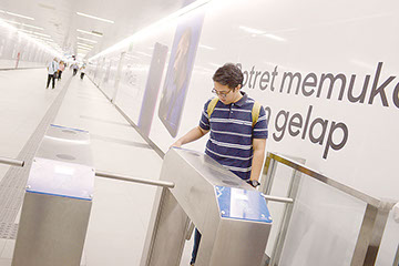 Warga saat akan keluar dari stasiun Bundaran HI, Jakarta, Senin (25/3).
